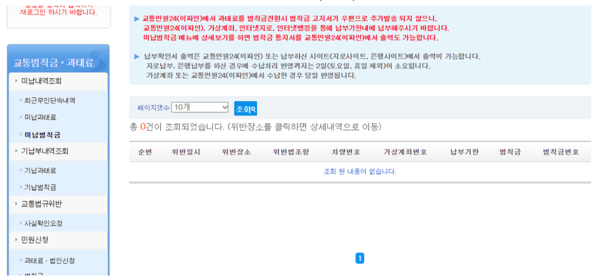 교통범칙금 실시간 조회