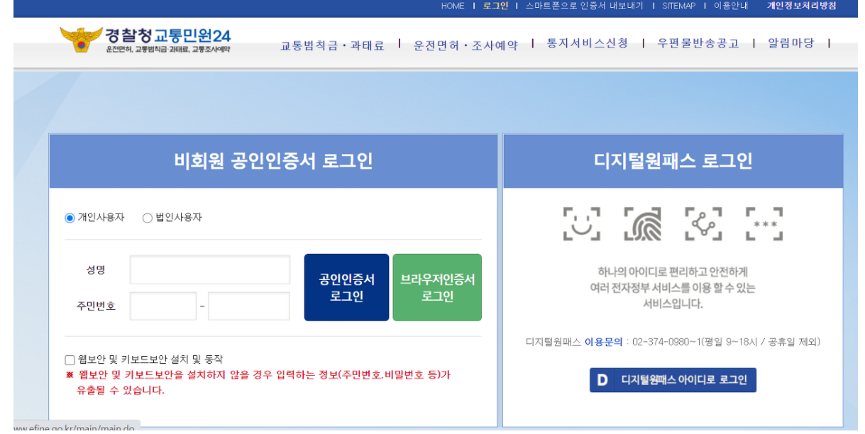 경찰청교통민원24 이파인 바로가기