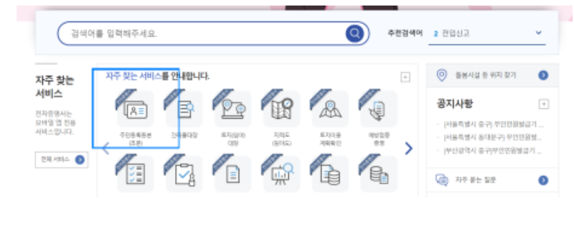 2. 메인화면에서 주민등록등본(초본) 메뉴를 클릭해 들어가주세요.