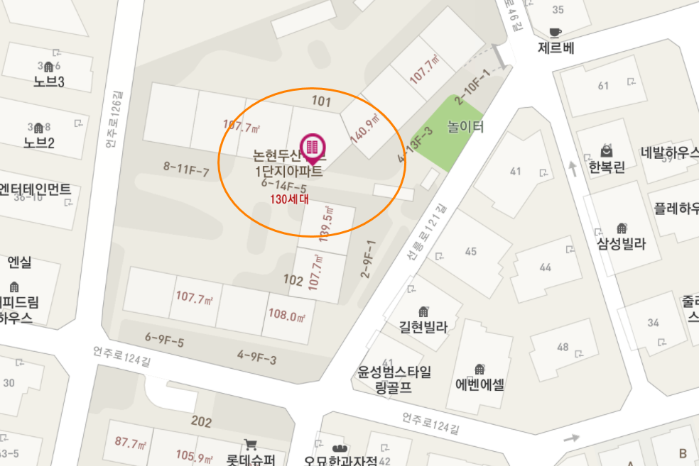 4. 그림 지도에 해당 아파트가 표시되며, 아이콘을 클릭하면 자세한 정보를 확인할 수 있습니다.