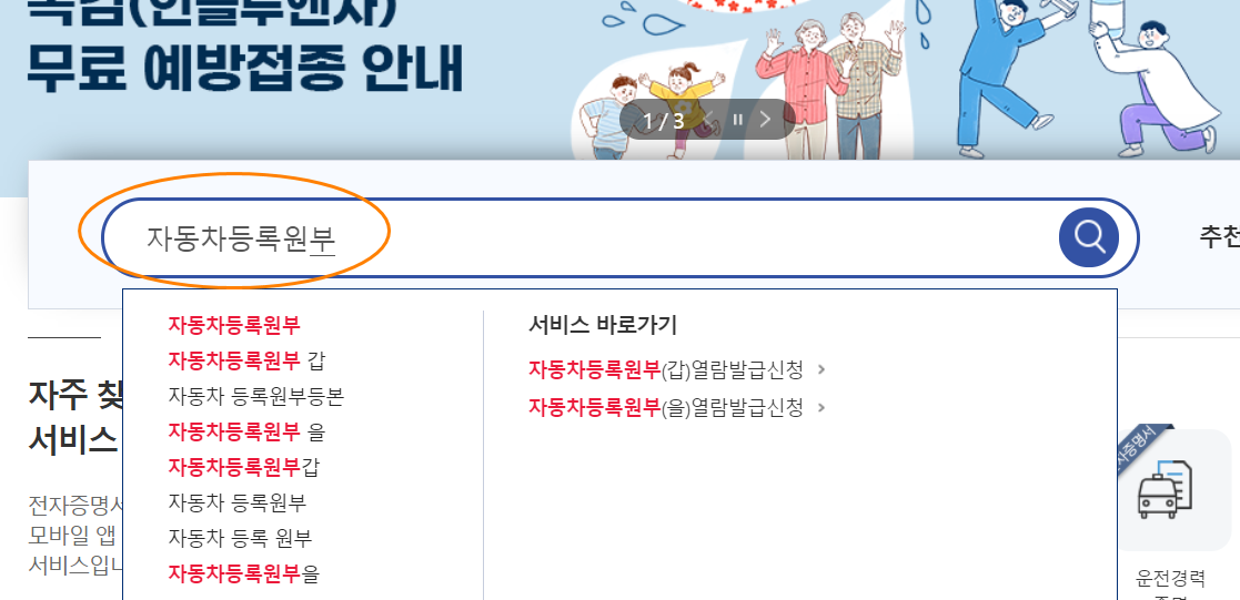 정부24를 이용하는 분들이라면 대부분 메인페이지에 있는 자주 찾는 서비스를 이용합니다. 이곳에 거의 모든 민원업무가 마련되어 있는데요.